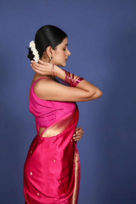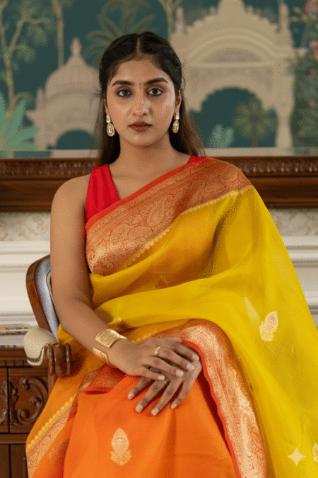 Note: The saree comes with its own blouse piece. The model is wearing a separate blouse for styling purposes.