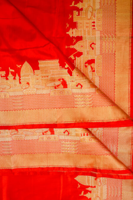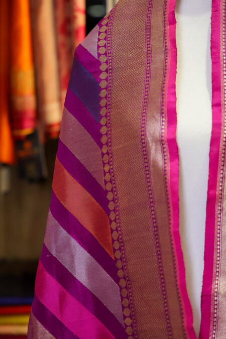 - Speciality: Handwoven depiction of Varanasi’s Ghats in Roopa Sona (gold & silver zari)
