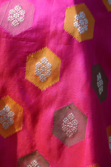 - Technique: Kadwa weave with intricate Meenakari detailing