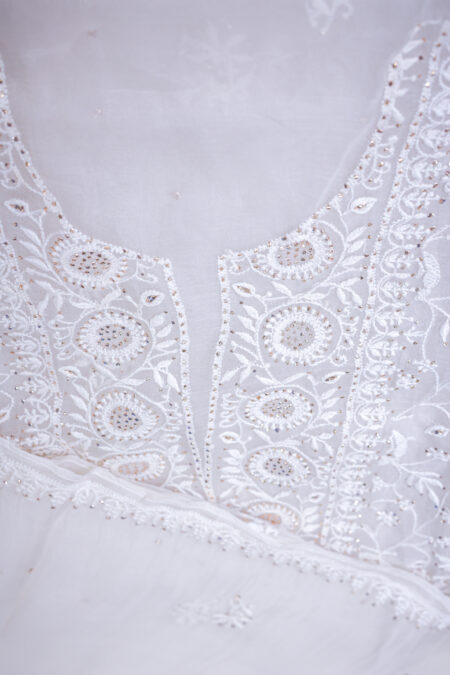 - Technique / Speciality – Handcrafted Lucknowi Chikankari with pearl and sequins embellishment