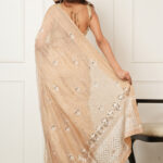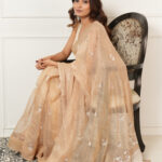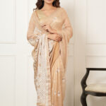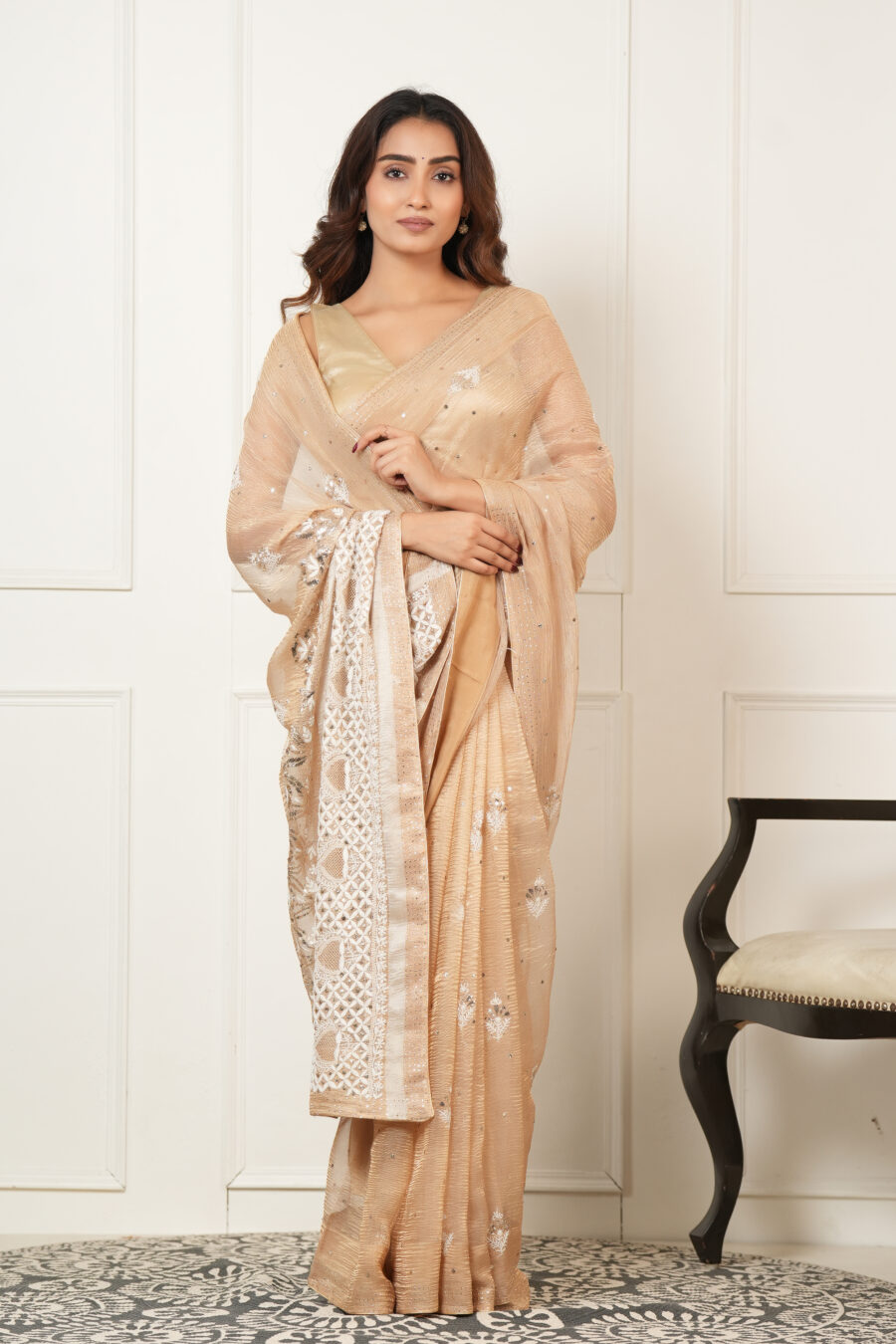 Golden Noor: Handcrafted Pure Tissue Silk Chikankari Saree with Mukaish Accents