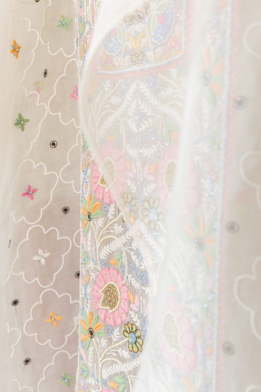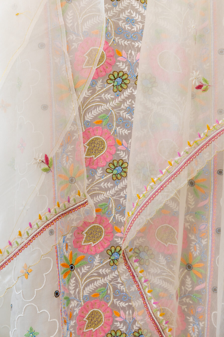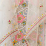 ✔️ Dupatta featuring delicate scalloped edging and floral vines