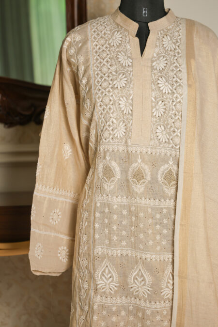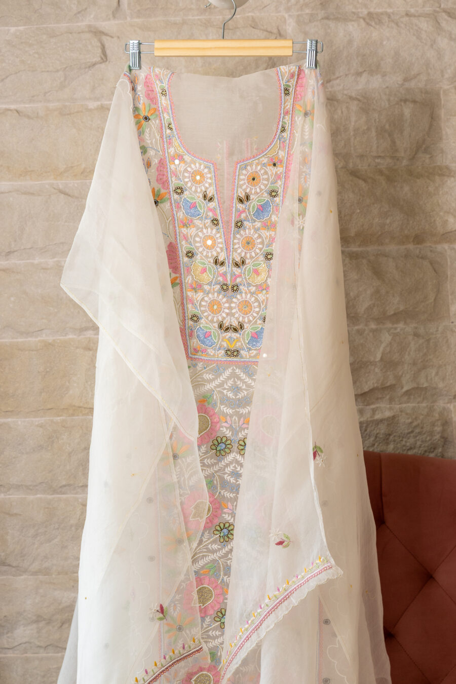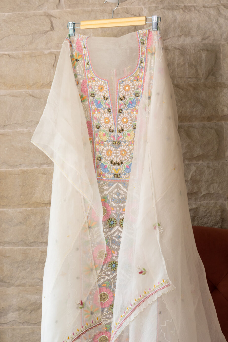 ✔️ Kurta & Dupatta: Pure Organza Silk, Colour: Soft Ivory