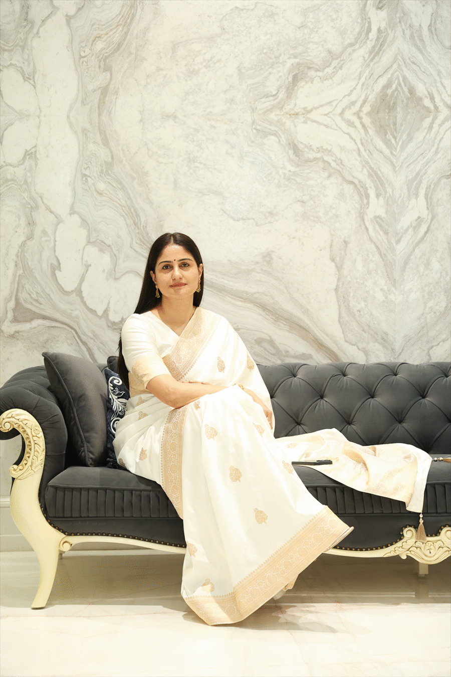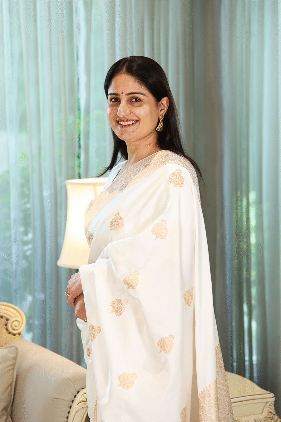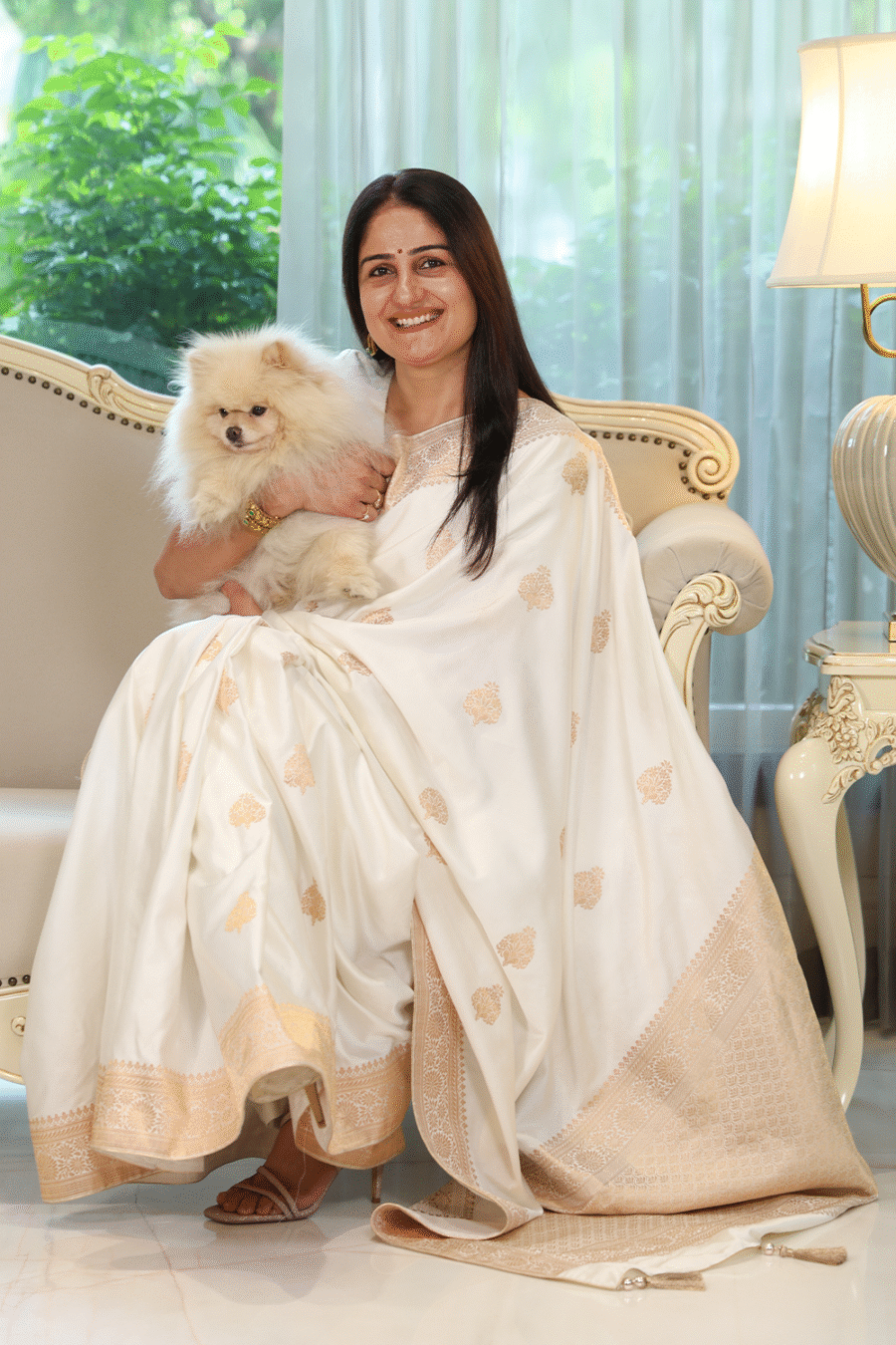 This saree is for the woman who values quiet confidence and lasting beauty. Its ivory palette and classic Banarasi weave make it endlessly versatile, while the Kadwa craftsmanship ensures it remains a cherished heirloom for years to come. Draping it is not just a style choice, but a nod to tradition, craftsmanship, and grace that never fades.
