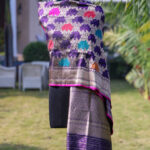 Handwoven by master craftsmen, the interplay of vibrant meenakari and luminous gold zari lends the dupatta depth, richness, and a regal presence. Elegant yet striking, it is a distinguished accent for ceremonial ensembles, festive occasions, and heirloom-worthy wardrobes.