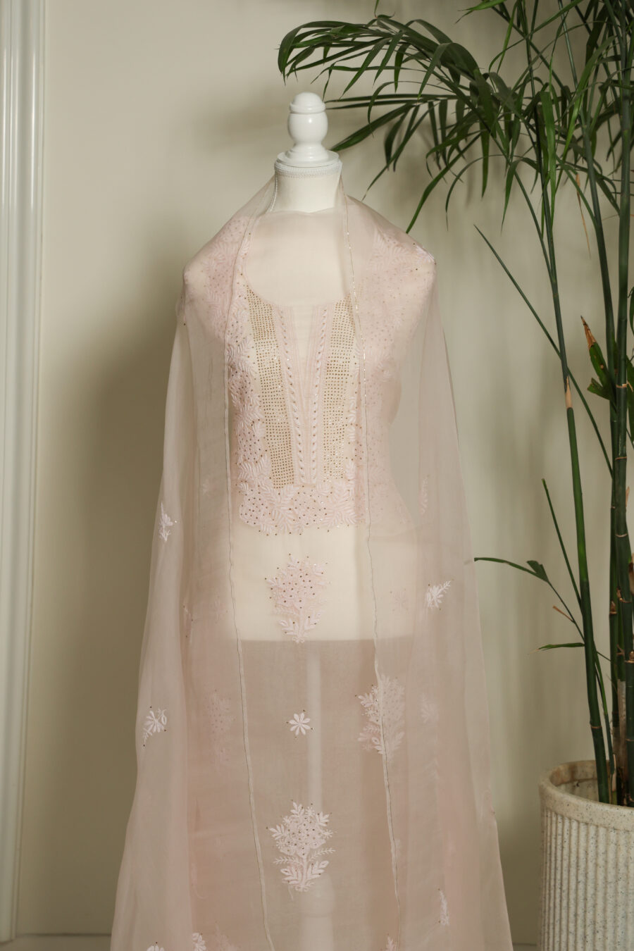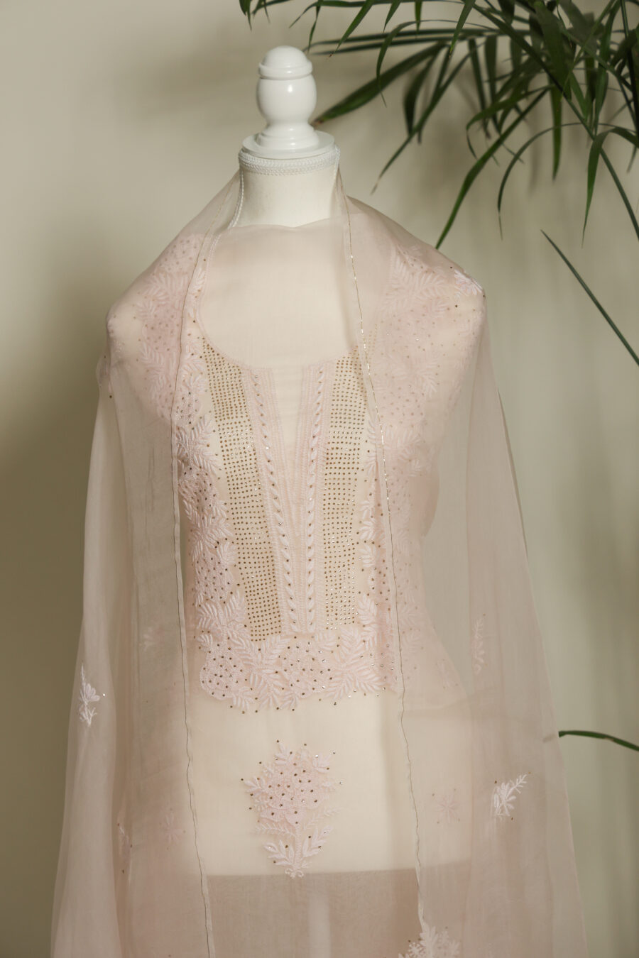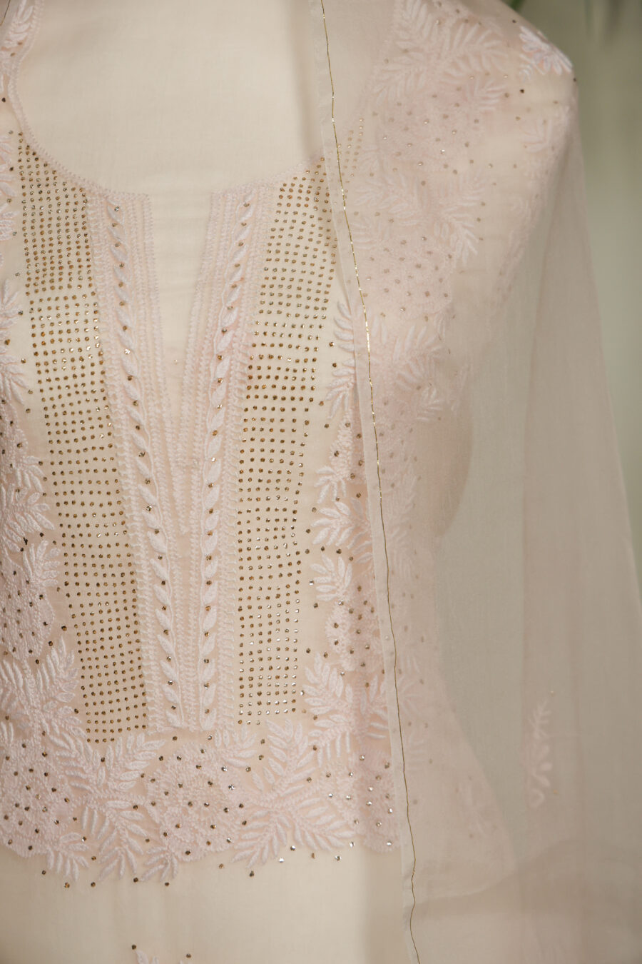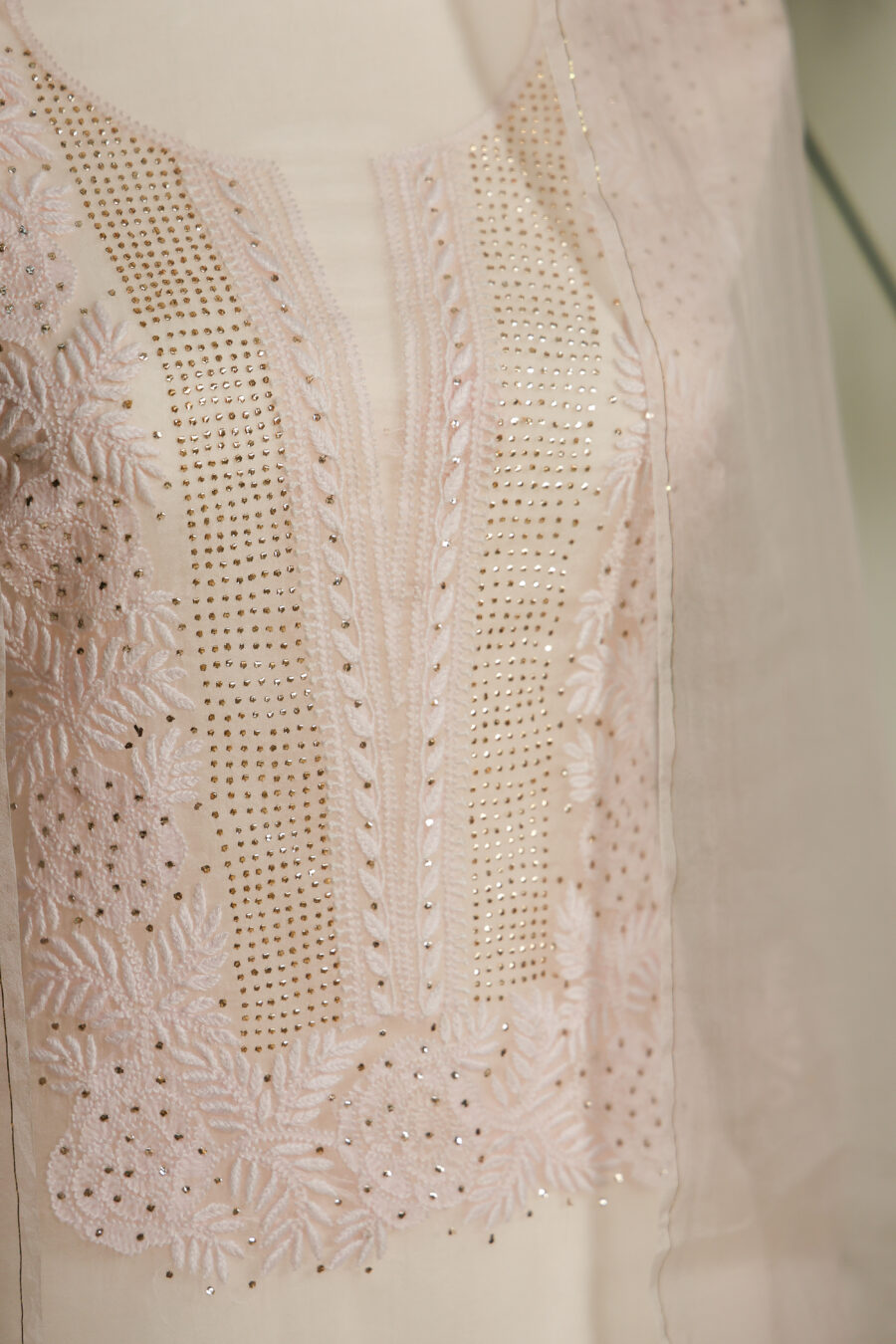 ✔️ Hand-embroidered Chikankari with intricate Mukaish embellishments