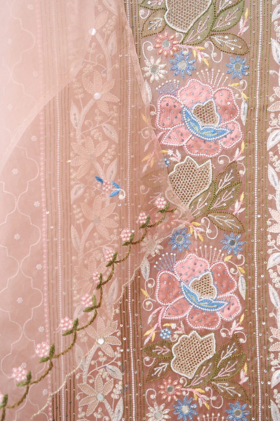 ✔️ Embellishments: Gold, rose gold & silver cutdana, sequins, zari, and pearls