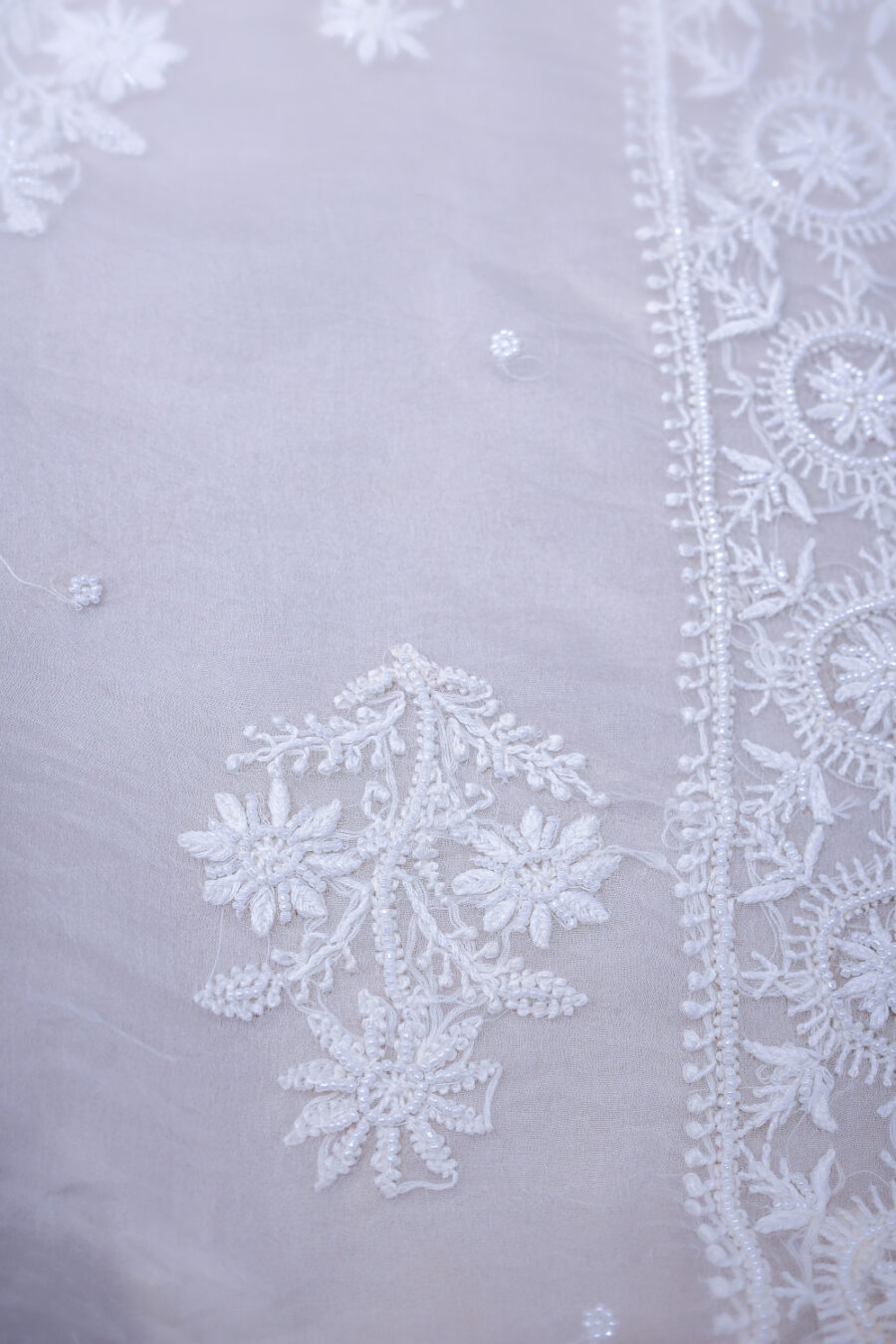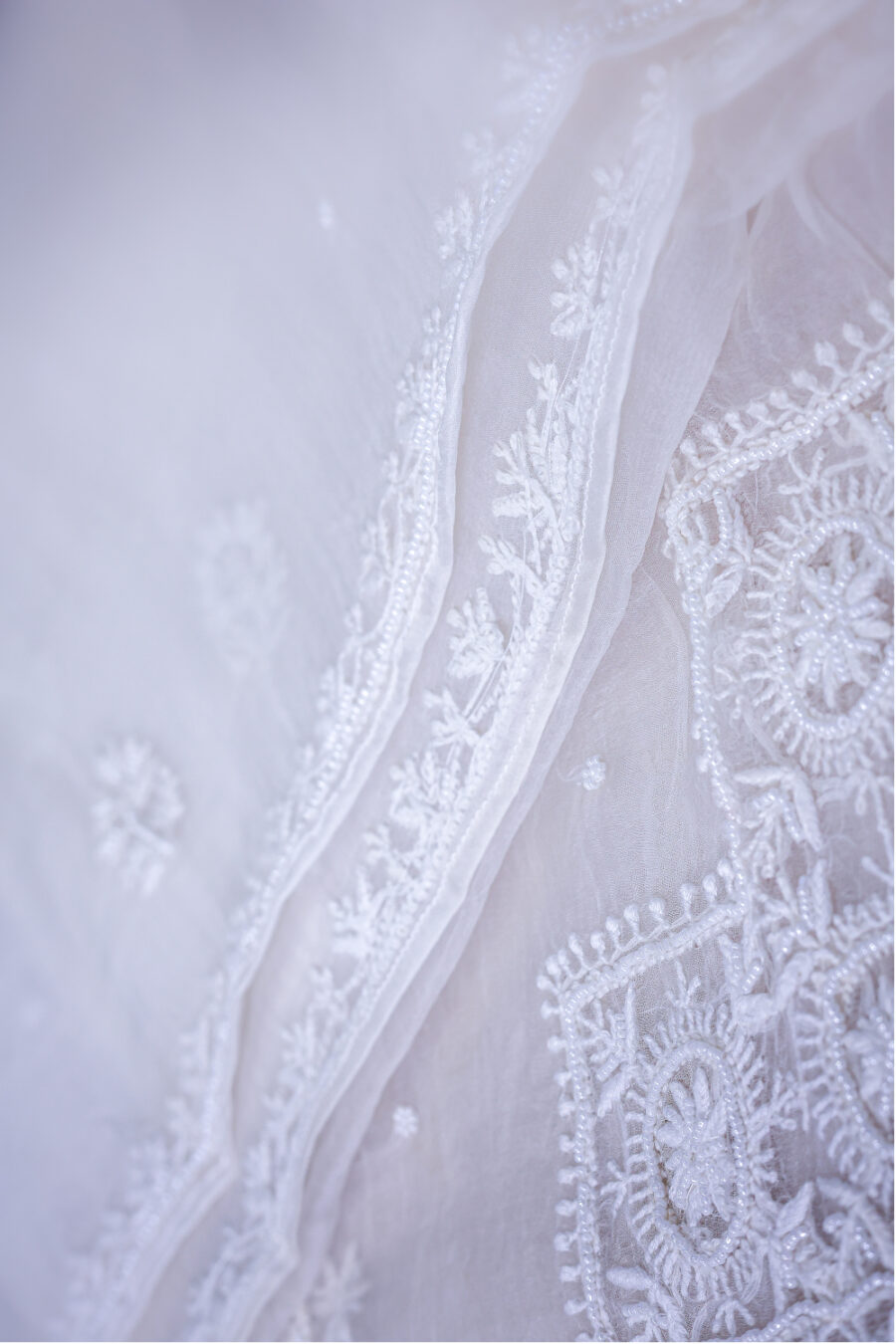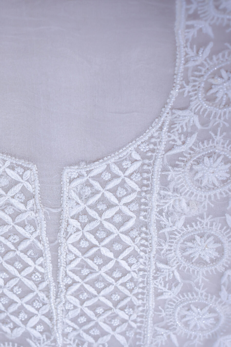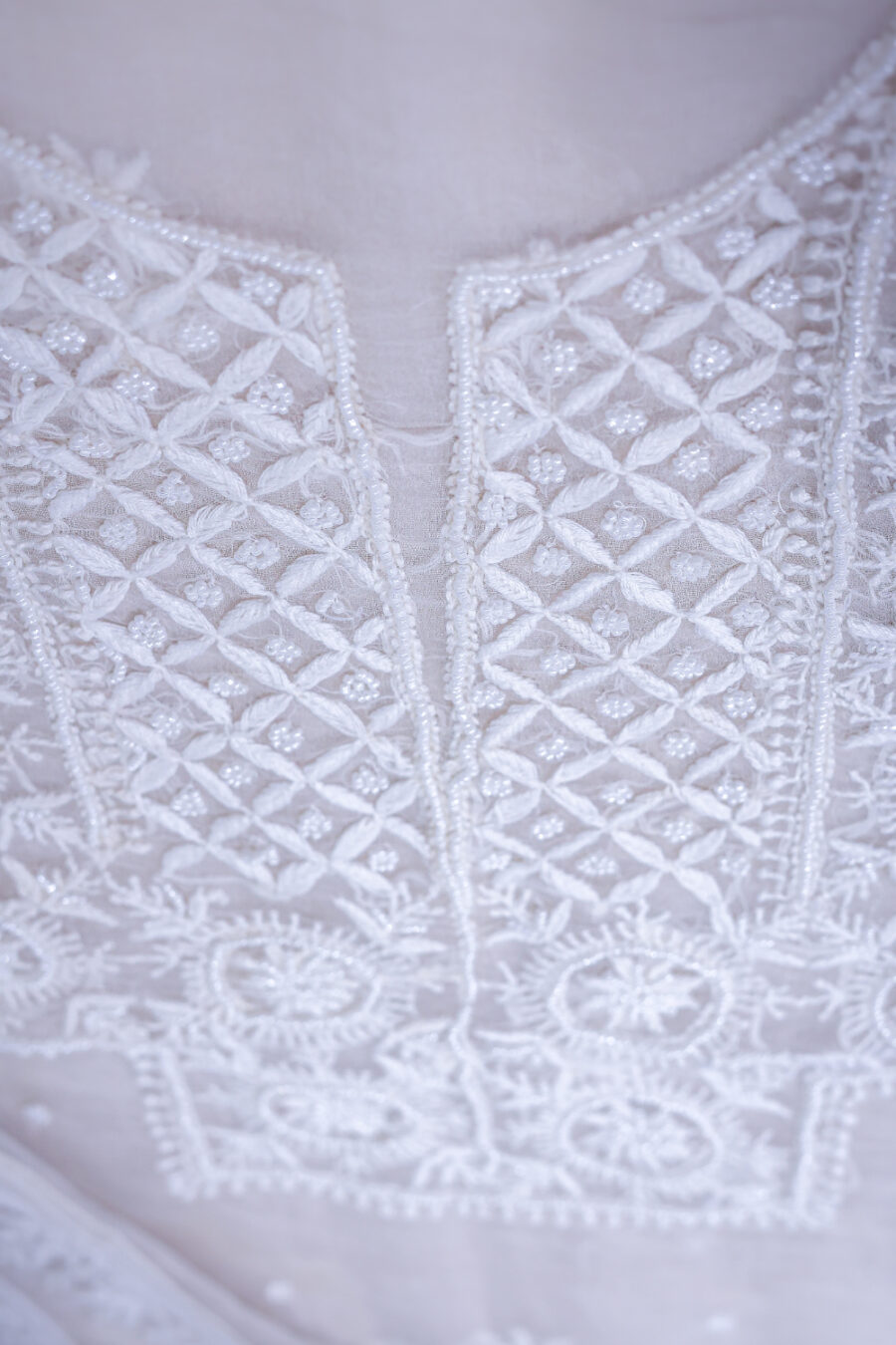 ✔️ Embroidery: Intricate Lucknowi Chikankari with delicate beadwork