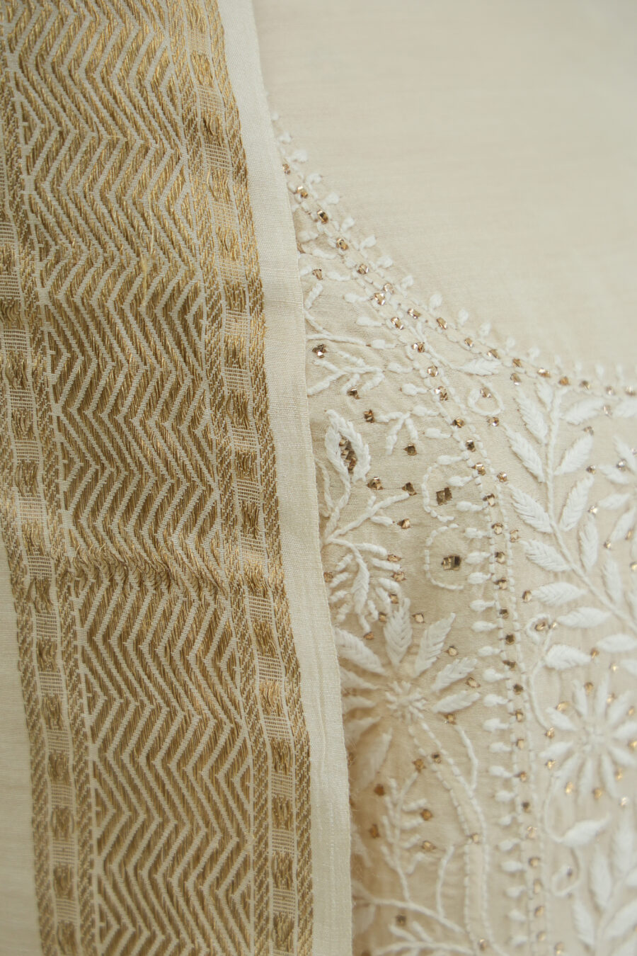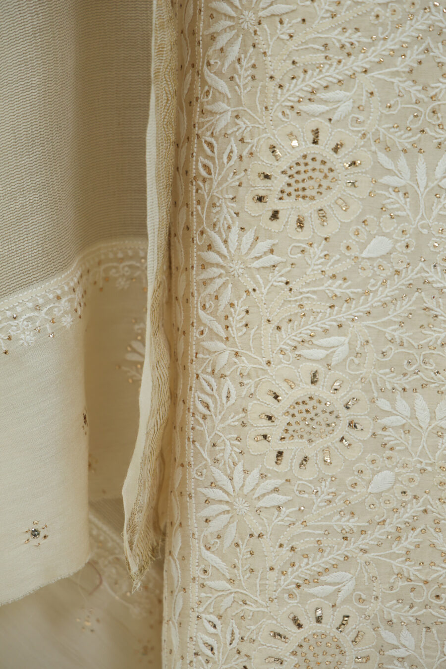 ✔️ Hand Embroidery: Intricate chikankari, elevated with delicate mukaish and kaamdani work for subtle shimmer