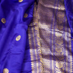 Handwoven by master artisans, the luminous gold zari bootis glow magnificently against the regal purple silk base, evoking an aura of royalty and refined elegance. Majestic yet graceful, this saree is an exquisite choice for weddings, festive rituals, and heirloom-worthy celebrations where tradition meets magnificence.