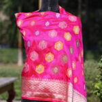 Handwoven by skilled artisans, the harmonious play of colour and fine gold zari lends this dupatta a luminous depth and refined elegance. Regal yet graceful, it is an exceptional accent for ceremonial ensembles, festive occasions, and heirloom wardrobes.